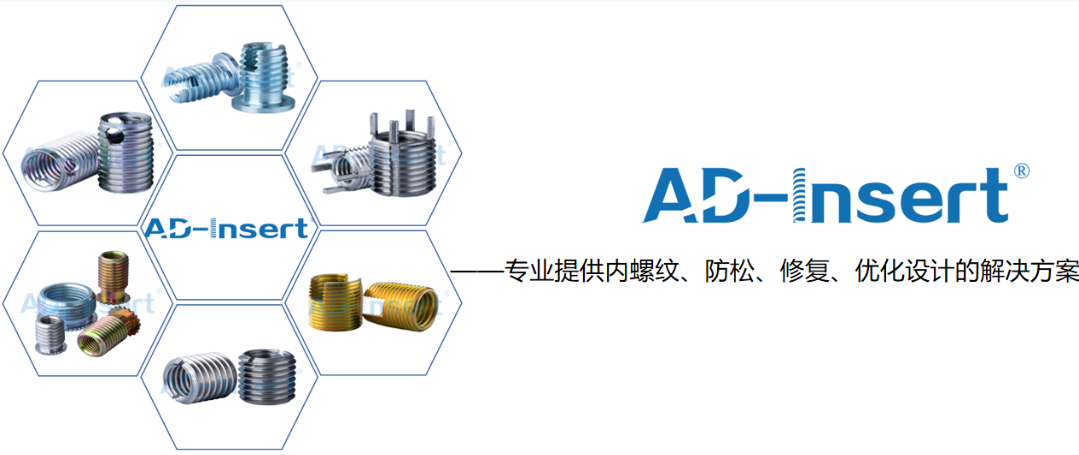 AD-Insert®自攻螺套也叫自攻牙套,是大連安迪機械設備有限公司研制、開發的內外帶有螺紋以及切削孔或切削槽的緊固件,其外螺紋精度等級一般為6g,內螺紋精度等級一般為6H,安裝后底孔螺紋強度更高,效果更好。其表面硬度可達450-500Hv。具有“自攻”特點,無需用絲錐加工底孔螺紋(根據需要工件也可預制螺紋便于快速安裝),只需預鉆底孔后用安裝工具可直接裝入,安裝效率高,使用方便。可明顯提高工件的連接強度和耐磨性及有效的簡化產品設計等。自攻螺套應用于輕合金(鋁、鎂、鋅及其它合金)、鑄鐵、黃銅、青銅、熱固性塑膠、層壓板、硬木等材料上.同時自攻螺套也可對已損壞的內螺紋進行修復,安裝AD-INSERT®自攻螺套后,仍然可以使用原來的螺栓,經濟美觀且方便快捷.AD-INSERT®自攻螺套現已被許多先進國家廣泛應用于汽車工業,地鐵系統,軍工用品,家電用品,建筑機械,事務機械,電子產品,工程塑料,組合家具,鋁合金鑄件等行業。